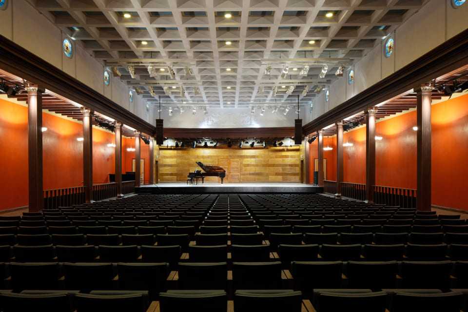 В 1897 году в городе возвели сценическую площадку, названную «Концертный сад курхауза Эдинбург». Современный зрительный зал «Дзинтари» в 1962 году архитектором Модрисом Гелзисом. Сооружение не имеет стен — только крышу, вмещает до 2000 зрителей. Реконструировали «Дзинтари» в 2006 году — обновили сцену, она стала пятиуровневой и подходит для выступлений как духовых, так и симфонических оркестров. Заменили акустические системы, установили обогреватели с инфракрасным излучением и мягкие, удобные сиденья для зрителей.