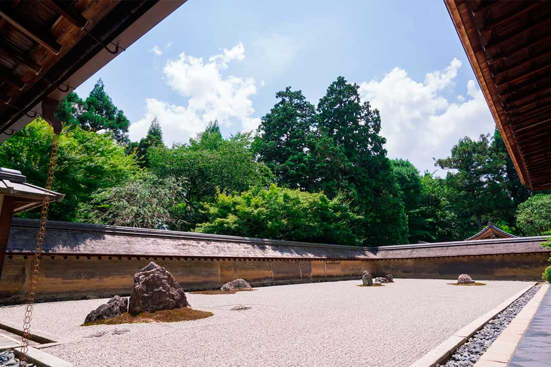 В саду храма Реандзи собрана коллекция из 15 продуманно расположенных камней, «дрейфующих» в песочном море. Сам храм датируется XI веком и служит мавзолеем для нескольких японских императоров