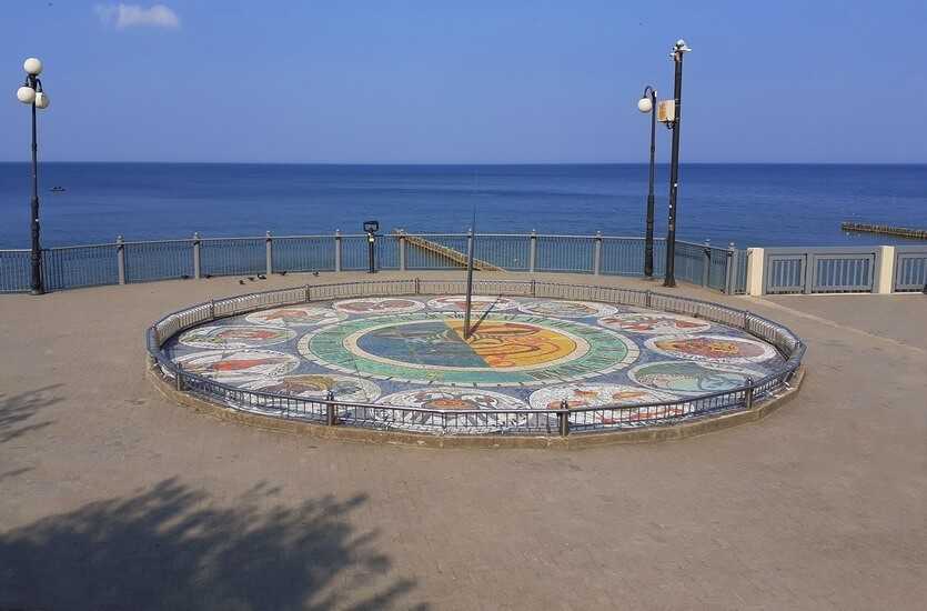 Главным скульптором Раушена был Герман Брахерт, а советского Светлогорска – Николай Фролов. Именно он создал Солнечные часы «Зодиак» на променаде. Они появились в Светлогорске в 1974 году. Часы показывают московское время, а на циферблате нанесено символическое изображение знаков зодиака. Попробуйте определить время и сделайте фотографии часов со ступенек, ведущих к променаду.