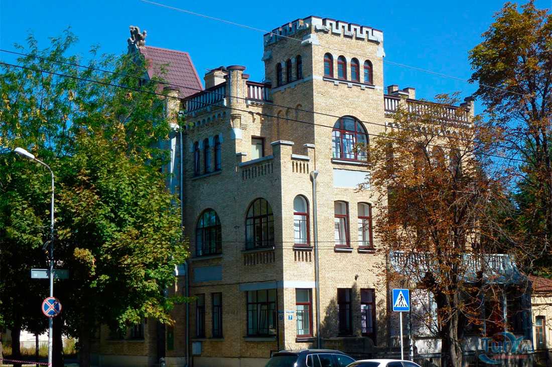 Такое название дача получила из-за скульптурной фигуры на фасаде здания, она изображает трех орлов, расположившихся в гнезде. Трехэтажное здание из красного кирпича украшает декоративная лепнина, окна разной формы и величины, арочные перекрытия и мезонины.