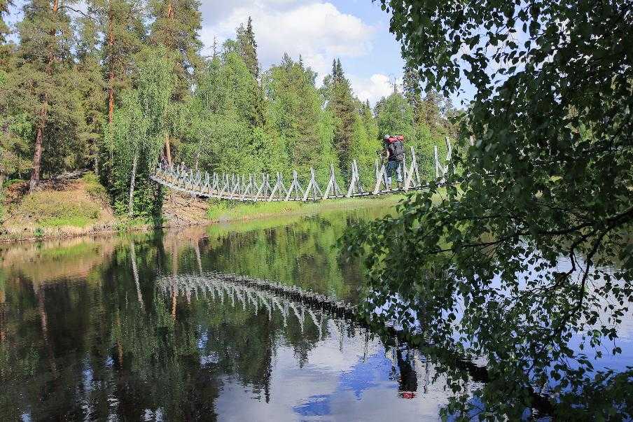 - Тропа Ketunlenkki («Лисья тропа») в национальном парке «Риповечи». Парк находится в финской Карелии, а его жемчужина — это красивый подвесной мост над ущельем, на высоте 10 метров над водой. Он абсолютно безопасен, но несмотря на перила и металлические сетки впечатляет. Длина маршрута — 4 км.