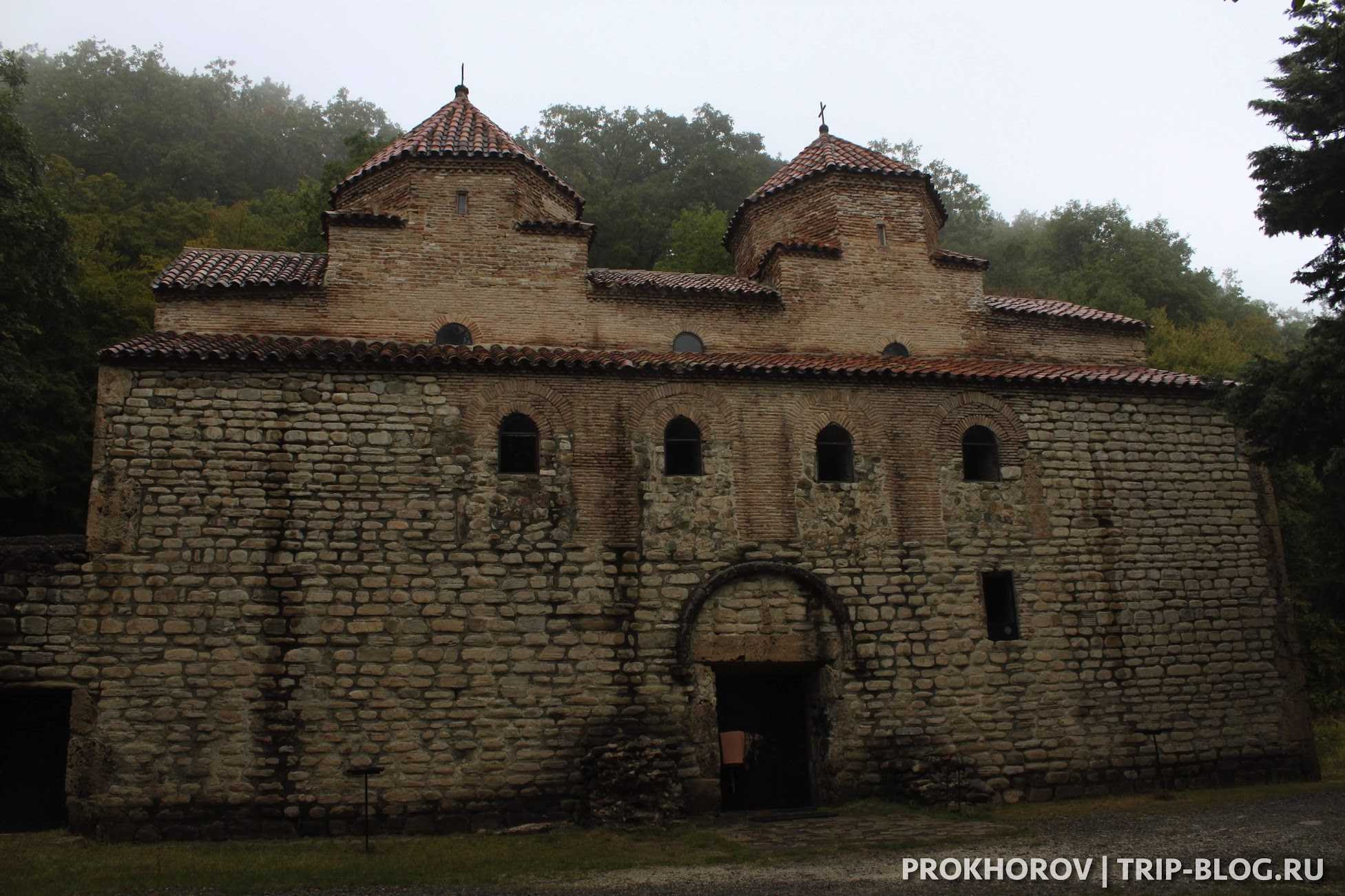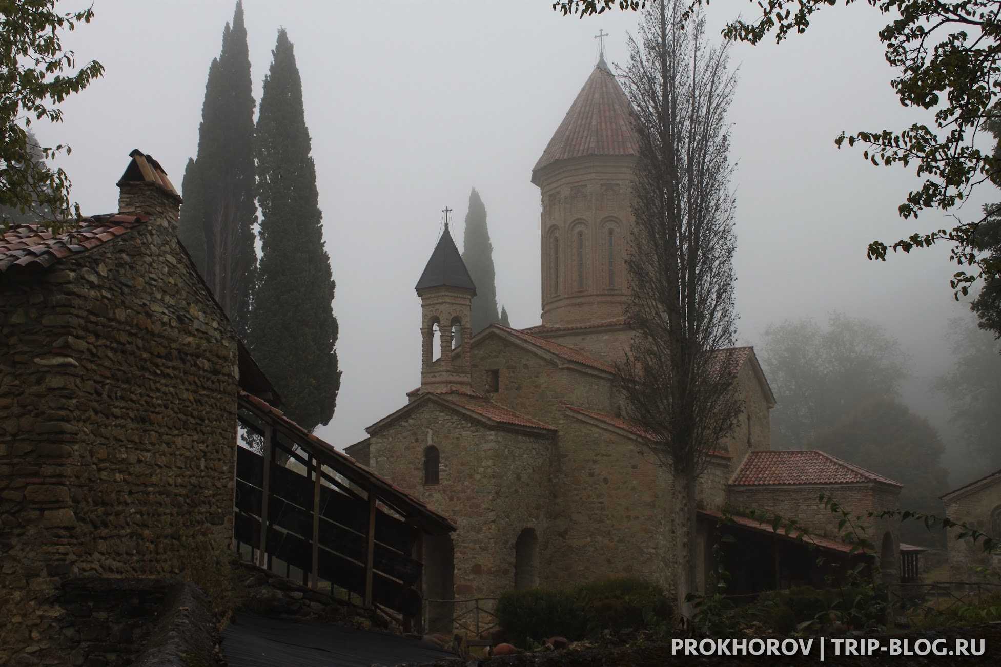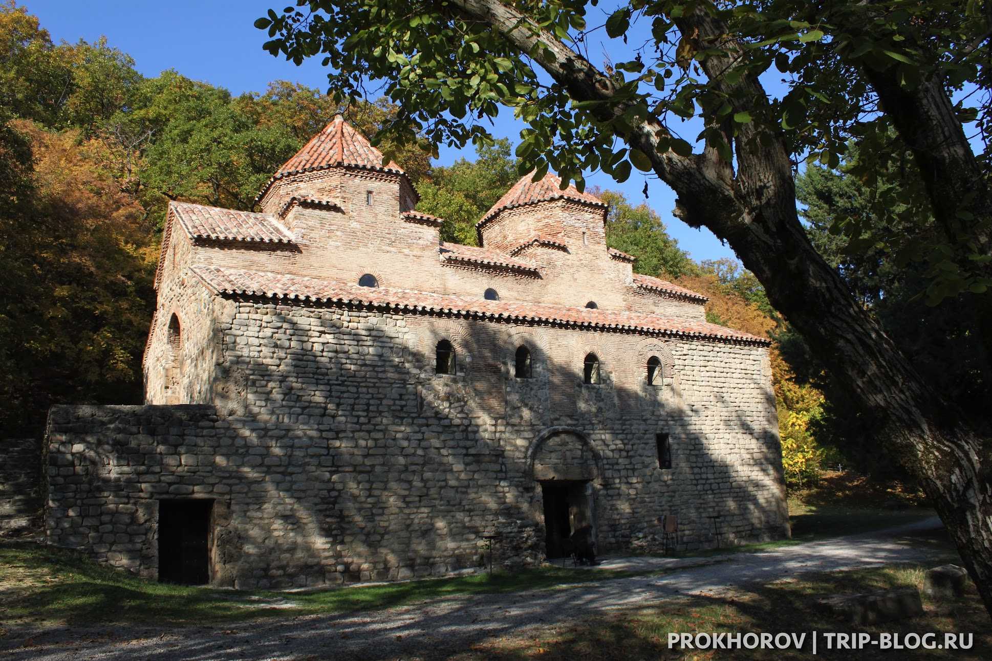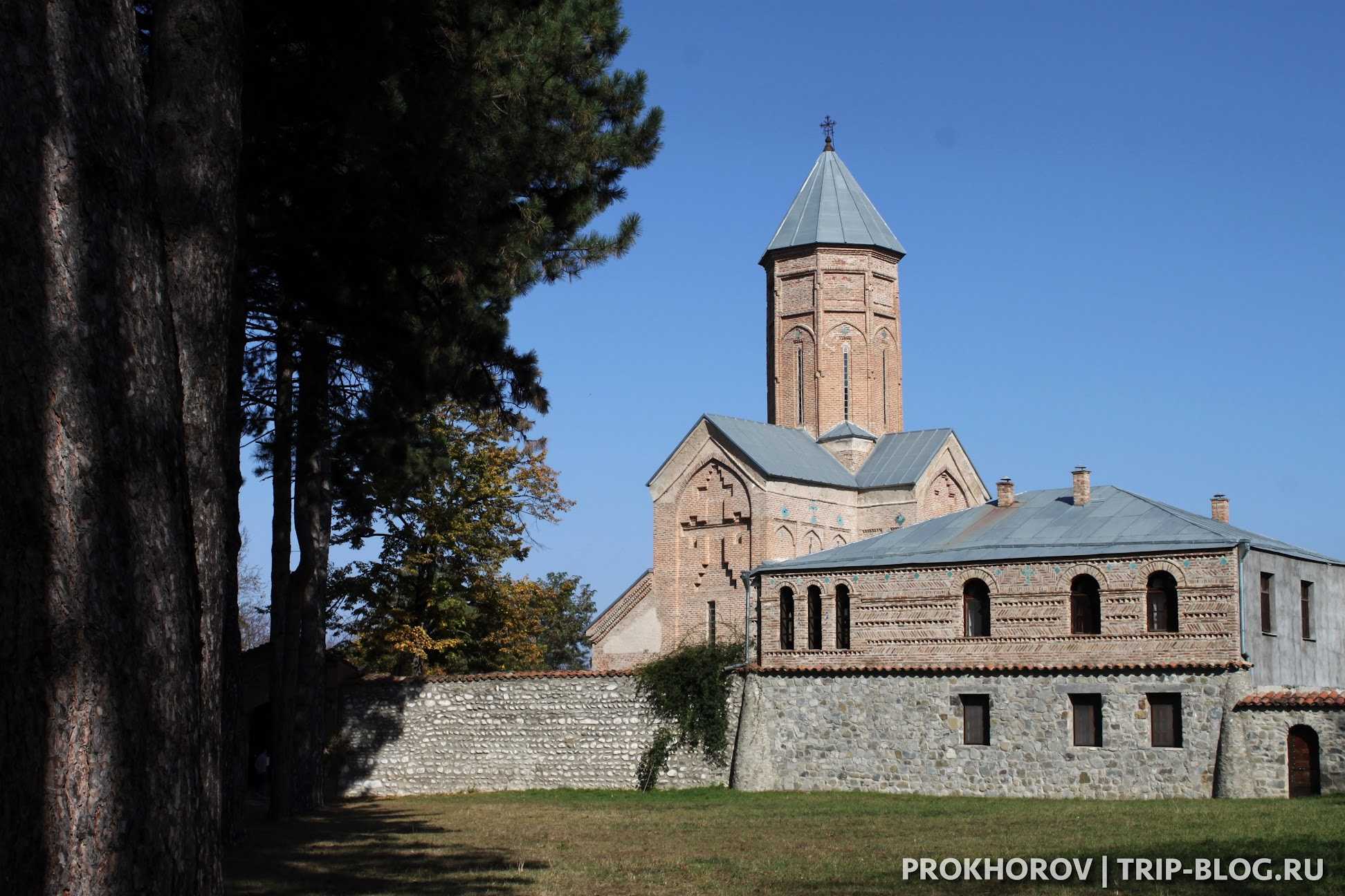 Действующий монастырь IV века. Одна из террас монастыря отдана под марани, традиционное винохранилище. Однако, обольщаться на сей счёт не стоит. Вина там не держат. Расстраиваться тоже не надо. Время от времени уникальное монастырское вино продают в местной лавке. Самый запоминающийся храм Кахетии и одно из лучших сочетаний уединённости монастыря и элегантности соседствующего неподалеку отеля Нелькариси. Есть смысл переночевать именно здесь.