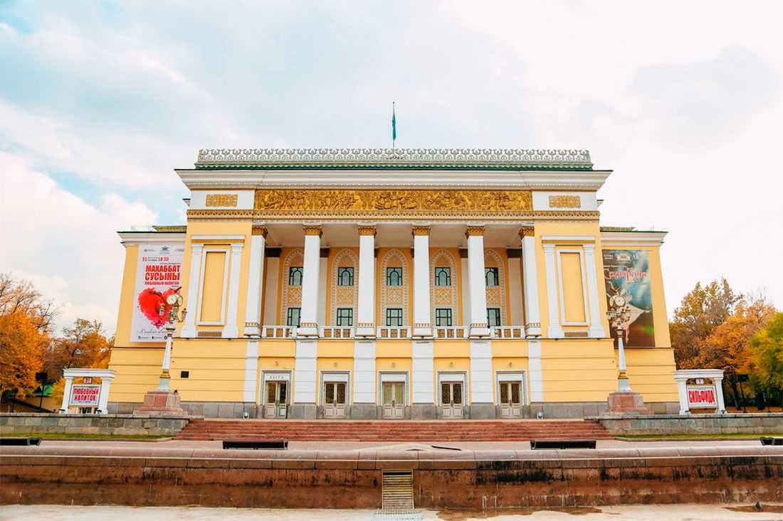 Театр оперы и балета – практически ровесник Театра драмы: он был открыт в 1934-м при музыкальной студии. В 1941-м труппа переместилась в новое трехэтажное здание. На тот момент это было самое большое сооружение в Алма-Ате. Окрашенное в белые и желтые цвета, дизайном фасада оно напоминает постройки в стиле классицизма, но отличается некоторой монументальностью форм.