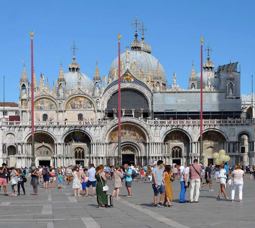 Кафедральный собор Святого Марка, удивляющий взоры посетителей как внешним видом, так и внутренним убранством. Он является одним из немногих примеров византийской архитектуры в Западной Европе. Расположен на площади Святого Марка в Венеции.