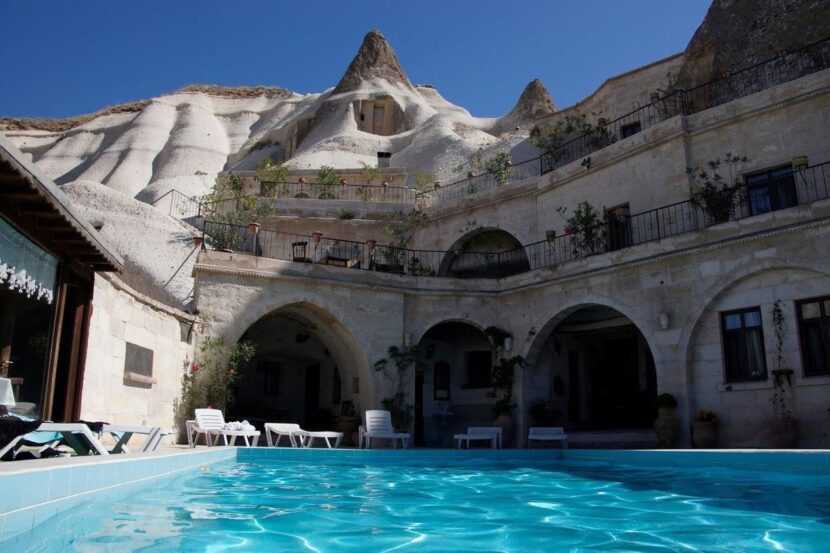 - Лучший пещерный отель с бассейном: Local Cave House Hotel — этот пещерный отель прославился благодаря своему невероятному бассейну. Убедитесь, что вы нажмете на ссылку и посмотрите, насколько эпичен фон бассейна с этими классическими каппадокийскими скальными образованиями на заднем плане и традиционными пещерными комнатами. Это лучший выбор.