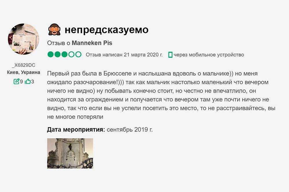 Я нарушила главное правило путешественников: прежде чем куда-то ехать, не прочитала отзывы. Не пренебрегайте этим. Судя по «Трипэдвайзору», «Писающий мальчик» разочаровал огромное количество туристов