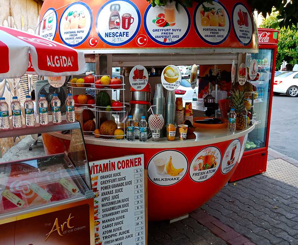 Продают мороженое, напитки и свежевыжатые соки. Смотрите цены: