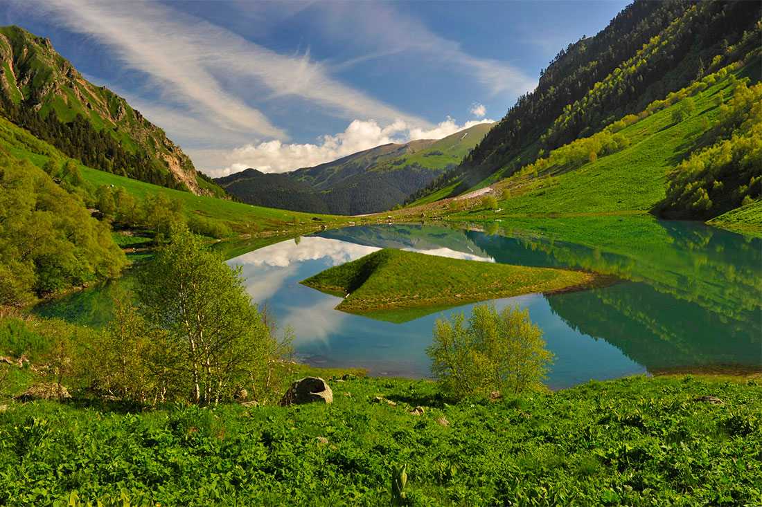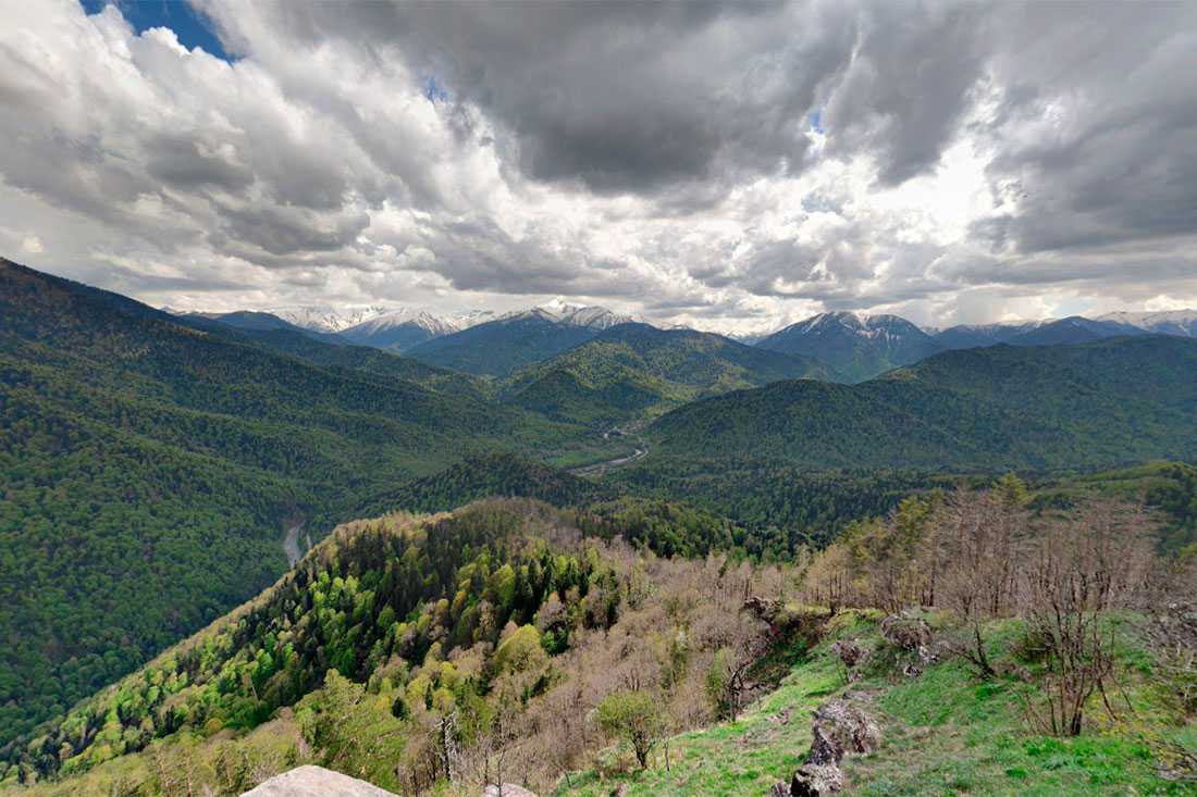 Большой Тхач – горный массив и одноименный природный парк в Адыгее. Он основан в 1997-м и внесен в список ЮНЕСКО. Самая высокая точка массива – 2 368 м. Вынесенное в название слово «тхач» переводится с адыгейского языка как «вечно молодой бог».