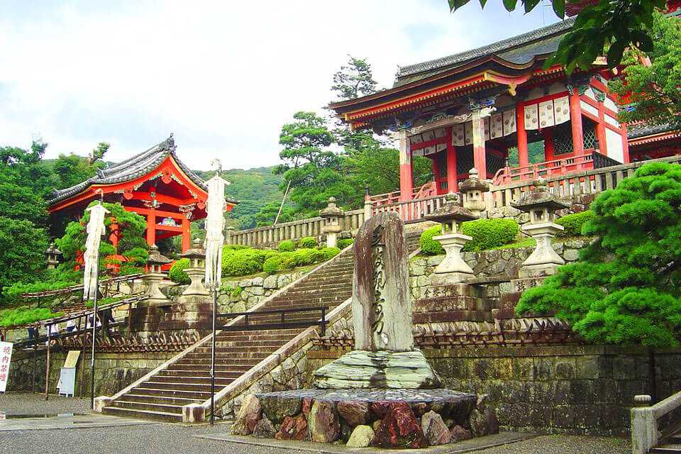 Основан монастырь был еще в далеком VIII веке и его главной святыней считается статуя тысячерукой Каннок. К ценным памятниками, которые расположены на территории монастырского комплекса также относятся золотой храм, врата охранников, трехъярусная пагода, колокольня. Современный центральный храм монастыря – «Главный зал», его еще называют «Помост Киёмидзу». Он считается памятником десятого века, однако, был значительно перестроен в 1633 году. Среди других древних сооружений комплекса выделяется колокольня и Западные ворота. Рядом с этими воротами берет начало небольшая улочка, на которой располагаются лавочки и магазины еще с XVII века.