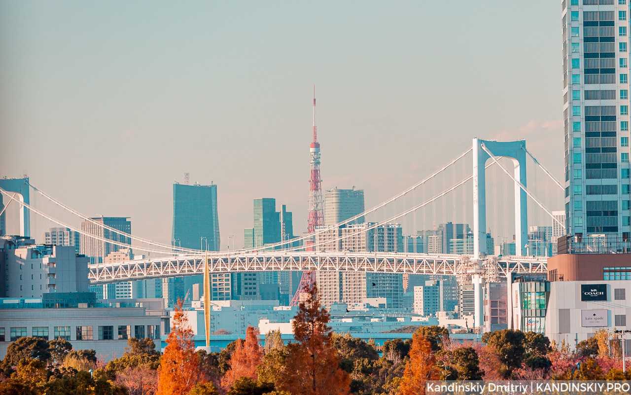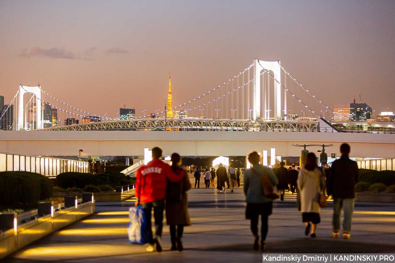 На обычных линиях метро до острова добраться не получится: сюда проложена линия автоматически управляемых поездов. Она называется Yurikamome (Юрикамомэ). Линия проходит по Радужному мосту, соединяя Токио с Одайбой.