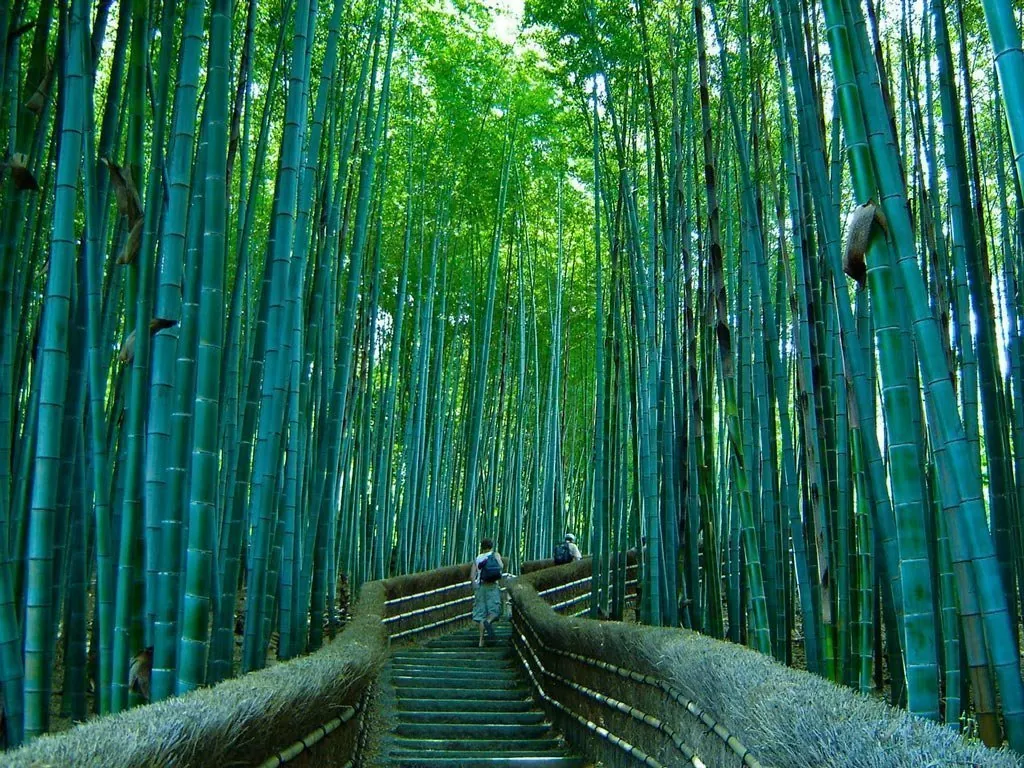 На просторах Интернета по запросу «красивые места планеты» довольно часто попадаются фотографии бамбукового леса – стройные гладкие ряды высоченных деревьев, которые не могут оставить равнодушным ни одного человека. Еще больше эмоций вызывает посещение этого разрекламированного в сети места – бамбукового леса Сагано, зажатого городскими квартала Киото на небольшой территории (всего 16 км2). Тысячи качающихся на ветру деревьев издают приятный звук, напоминающий мелодию ветреных колокольчиков, широко распространенных на Востоке. Японцы утверждают, что эта мелодия производит успокаивающий эффект, создавая уют на душе и возвращая организм к естественной гармонии с природой.