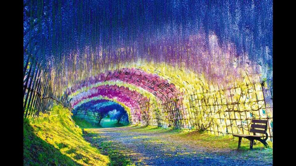 Небольшой городок Китакюсю знаменит самым красивым в стране садом из «водопада» цветов – Кавати Фудзи. На его основную достопримечательность – тоннель Вистерия приезжают полюбоваться не только японцы, но и гости со всего мира. В саду растут различные цветущие растения. Но главенствует – глициния, которая по-японски называется «фудзи». Этот цветок – один из символов Страны Восходящего Солнца. Растет глициния долго.