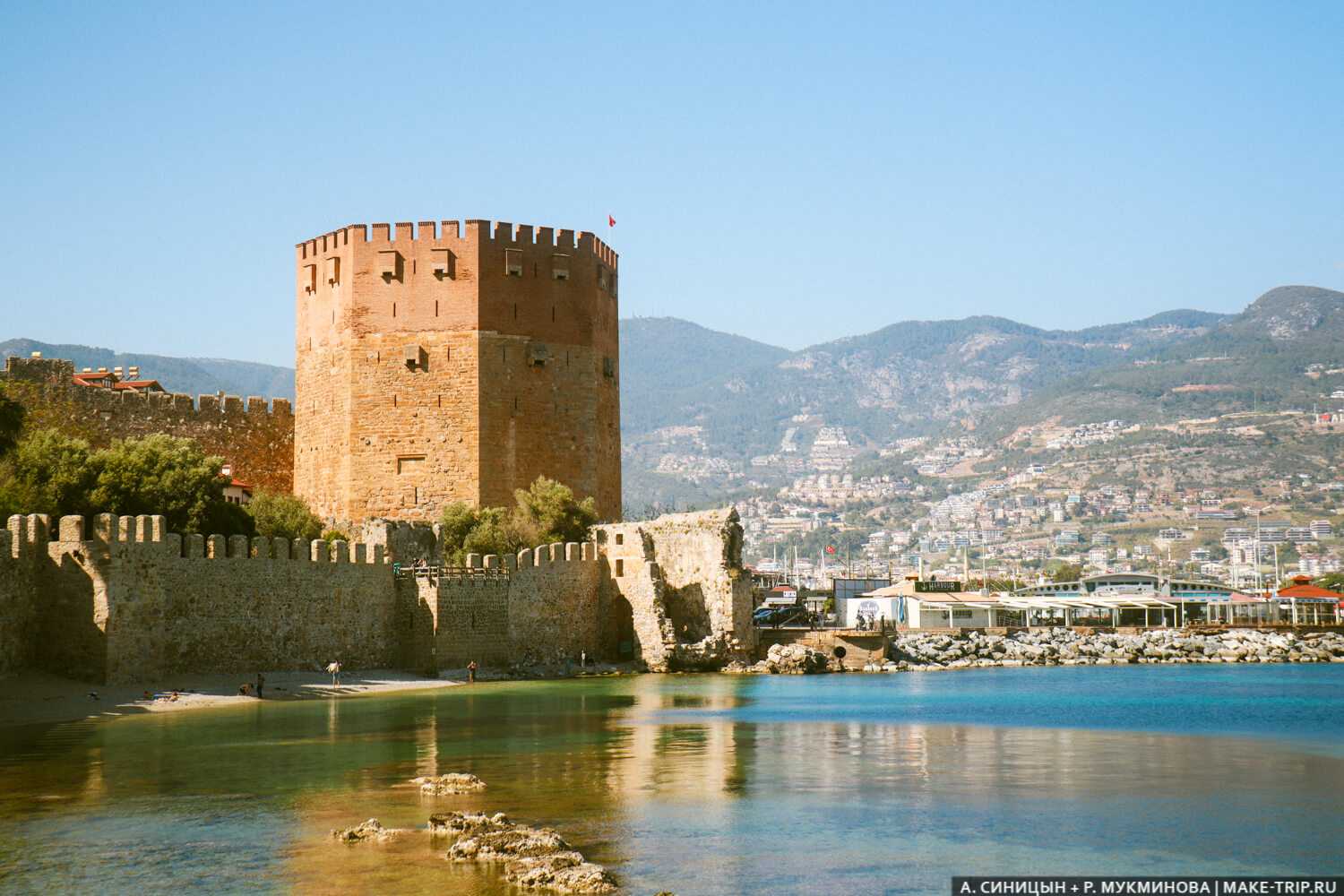 Красная башня (Кызыл Куле, Kızıl Kule) — визитка Аланьи. Она красуется на многих фото, и неудивительно, ведь башня невероятно фотогенична! Голубенькая прозрачная водичка, красный камень, зубчатые стены — рука сама тянется к фотоаппарату. Внутри ничего особенного нет, только скудненькая экспозиция с макетами кораблей, зато сверху обзор на 360°. Хотя бы ради таких видов стоит зайти.