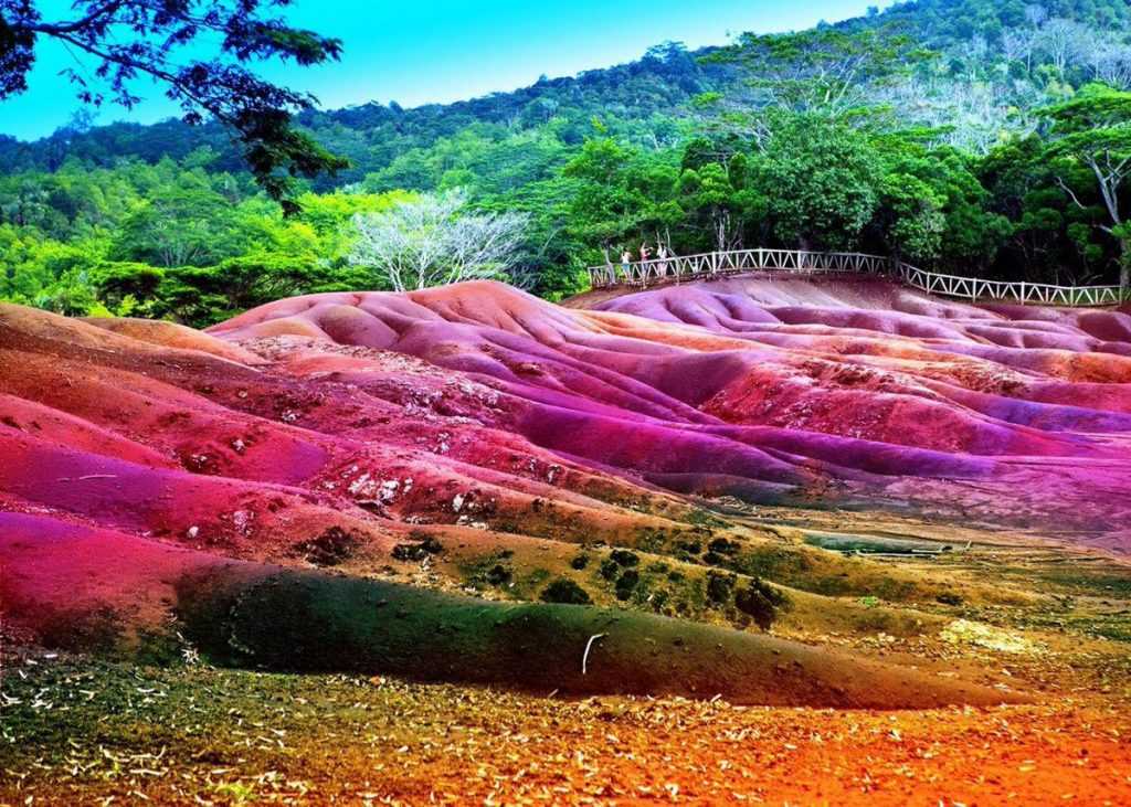 Интересным уголком парка являются цветные пески Шамарель. Вы можете добраться до него по панорамному маршруту, который проходит через тропический лес, останавливаясь в нескольких местах, чтобы полюбоваться великолепными видами и впечатляющим 83-метровым водопадом. Почему этот уголок природы так известен? Потому что на небольшом участке песчаных дюн семь цветов (красный, коричневый, фиолетовый, зеленый, синий, желтый, зеленый) создают настоящее красочное зрелище, которое, как говорят, лучше всего видно на восходе солнца. Такое место вы увидите только на Маврикии!