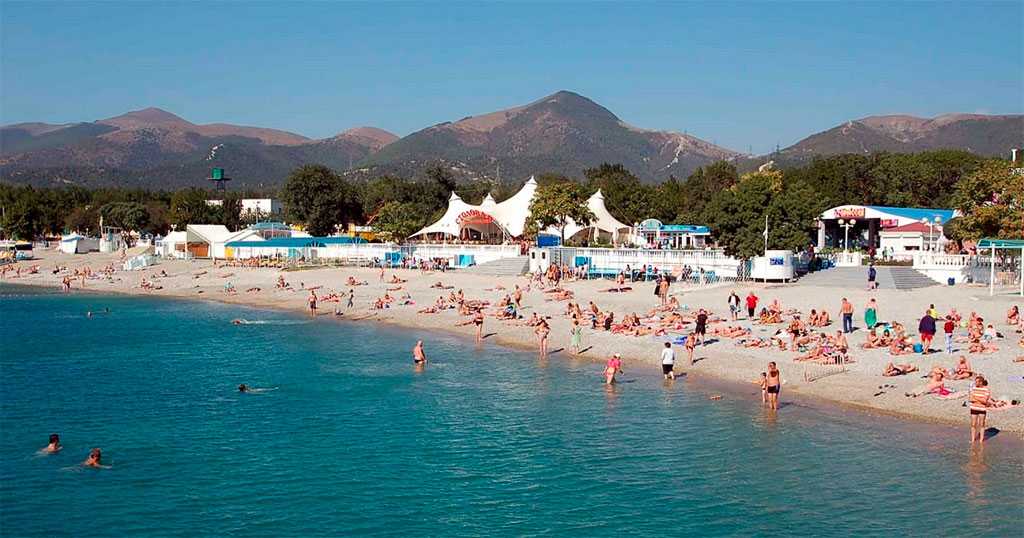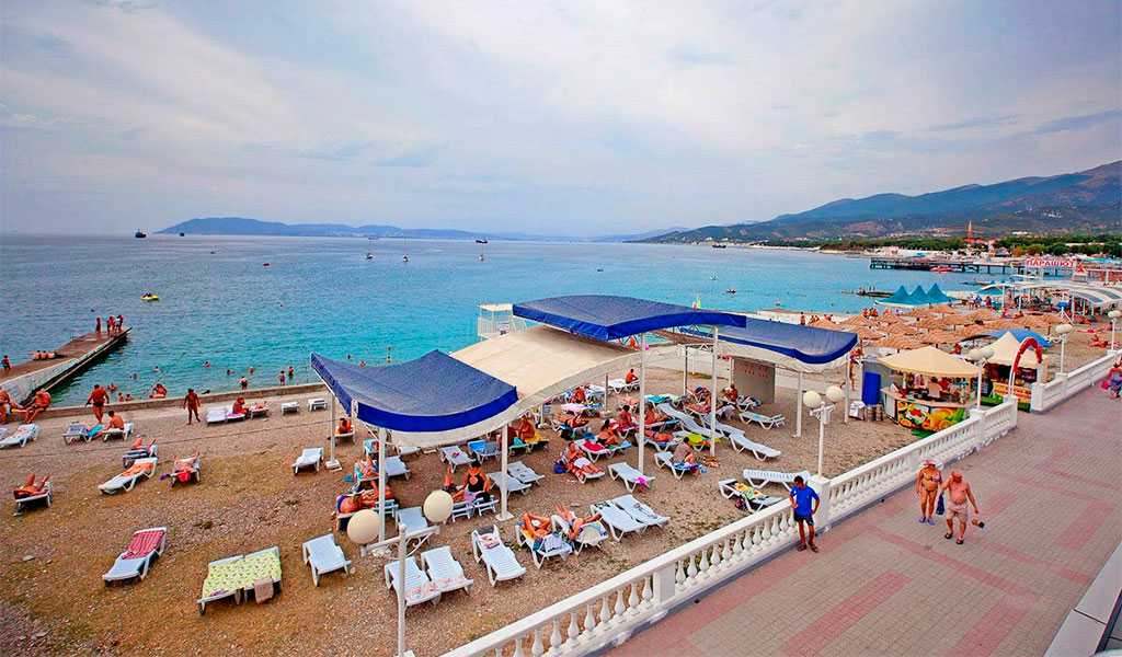 Галечный пляж находится в 10 минутах ходьбы от центра Кабардинки. Его длина составляет 200 метров. Здесь и шезлонги, и зонты, и раздевалки с душем. Мусорить запрещается – предусмотрен штраф.