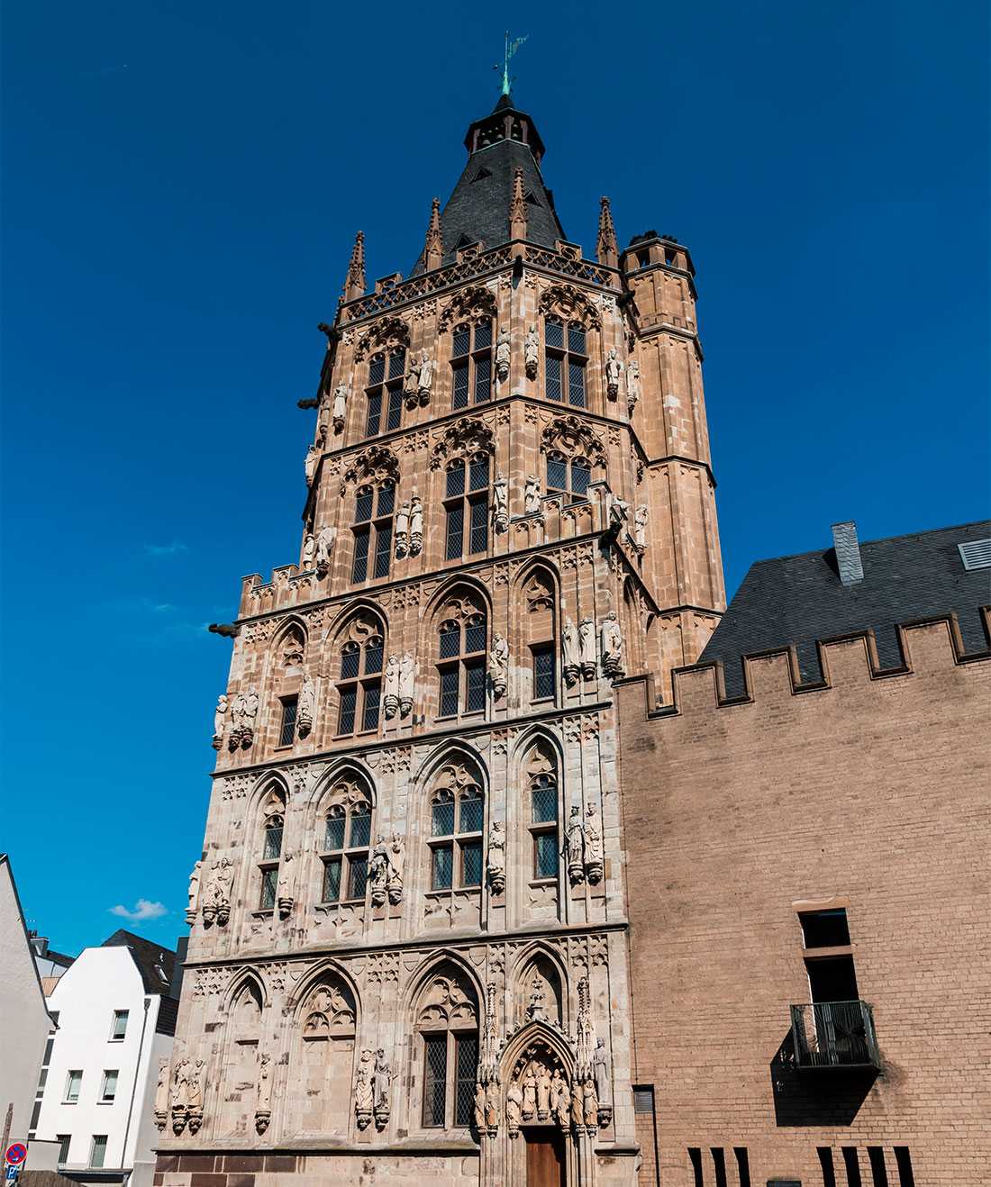 Кельнская ратуша, расположенная в самом сердце Старого города, является старейшей ратушей в Германии. Ее готическая башня украшена более чем сотней скульптур. Строительство башни началось в 1407 году. По тем временам это было самое высокое здание в городе, превосходящее в своих размерах даже Гросс-Сен-Мартен.