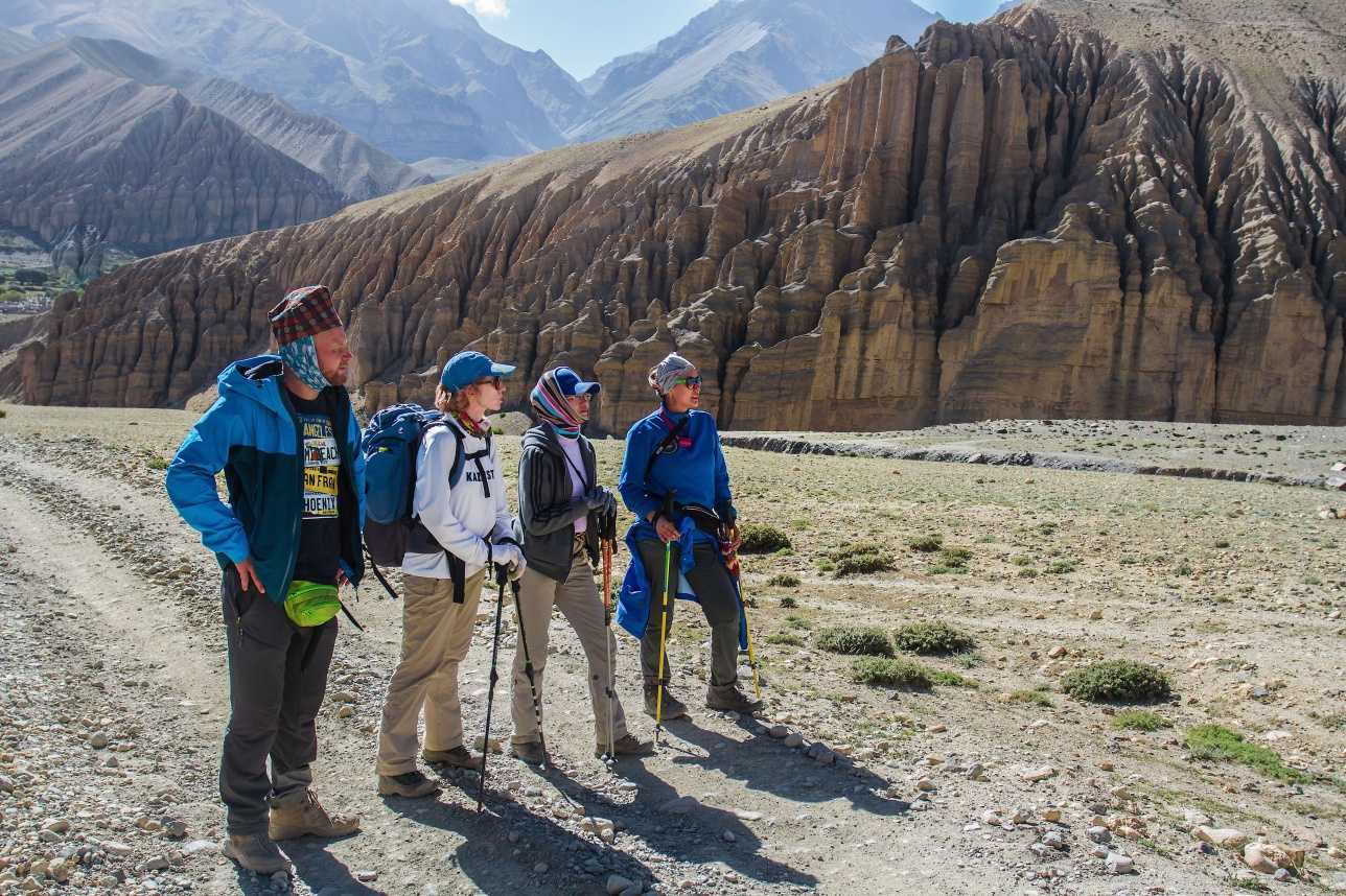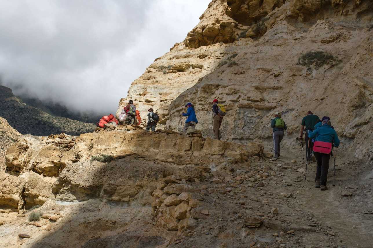 Мустанг поделен на Нижний и Верхний. Из Покхары Айгуль с группой долетела на маленьком самолёте до городка Джомсом, а оттуда несколько часов на джипах поднималась до горной деревни Кагбени. Этот населённый пункт испещрён лабиринтом узких улочек и считается стартовой точкой треккинга от Нижнего до Верхнего Мустанга к его столице Ло Мантангу. Впереди путников ждал многодневный пеший переход по скалистым долинам вдоль русла одной из четырех больших рек Непала и Индии – Кали-Гандаки. Тем же путем в XV веке торговые караваны доставляли соль из Тибета в Индию. Контролируя транзитную территорию, королевство процветало, но частые войны с соседями его в итоге разорили. Изменился и климат. Сейчас трудно представить, что в этом жарком и пыльном уголке Гималаев когда-то занимались земледелием.