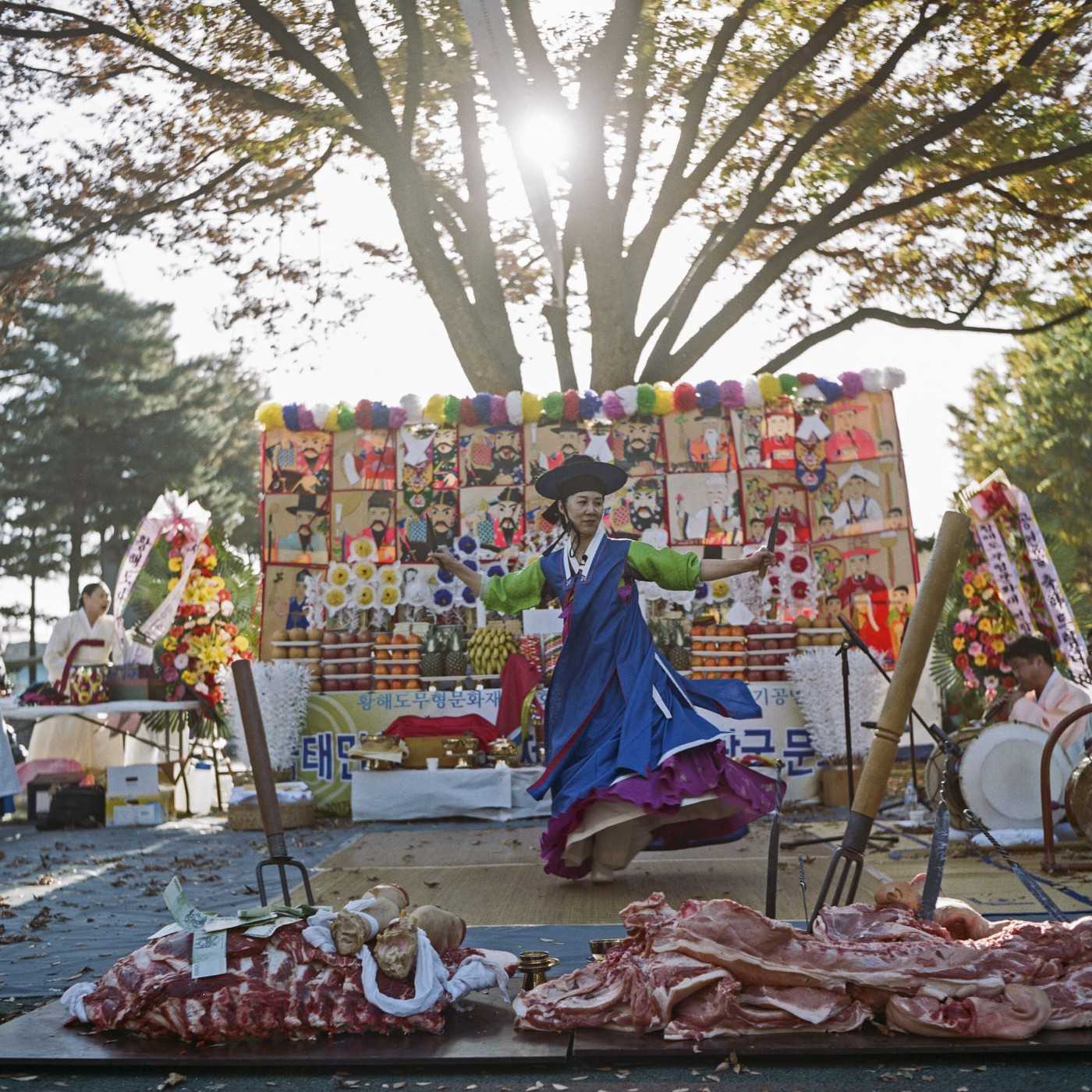Бежавшие из Северной Кореи утверждают, что там шаманизм тоже вполне себе жив, только существует потише южного собрата. В КНДР у правительства, борющегося с суевериями, все же получилось уничтожить большое количество храмов, древних алтарей и священных предметов.