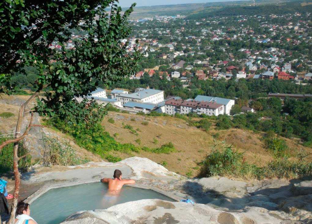 радоновые воды и углекисло-сероводородные источники под открытым небом.