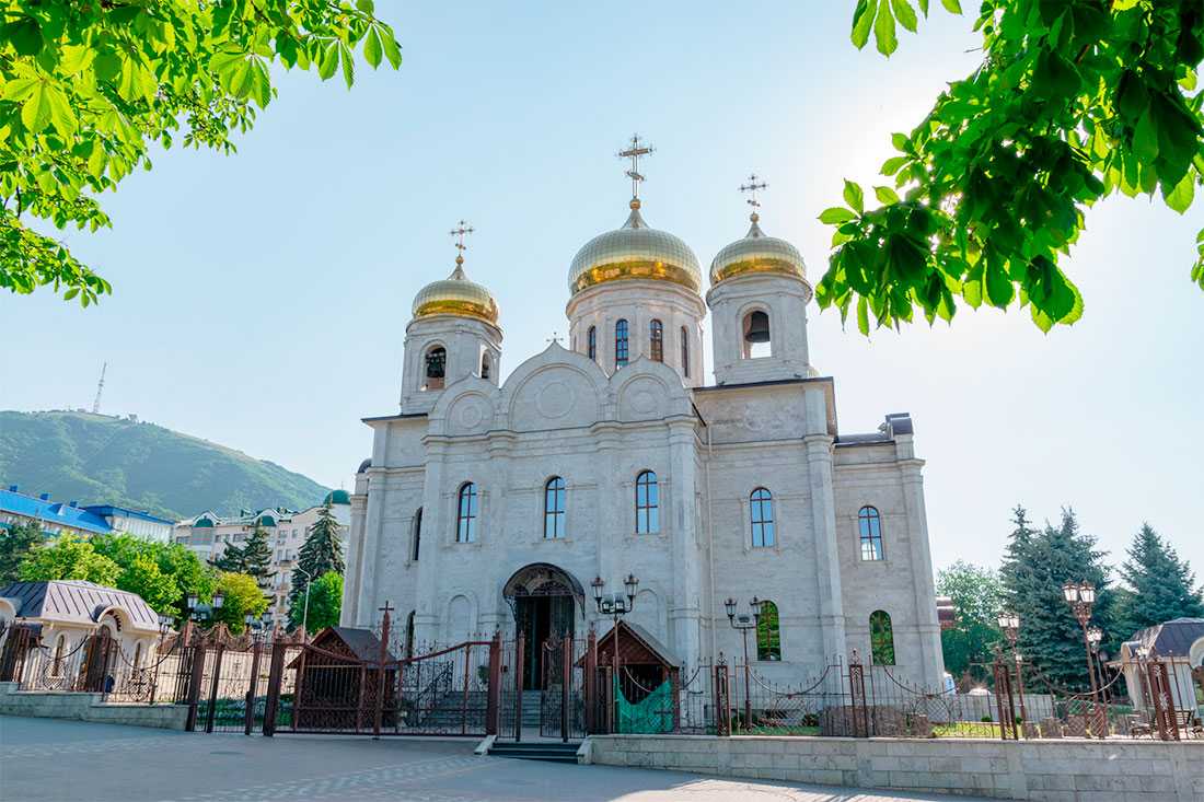 Этот собор, напоминающий своим обликом столичный храм Христа Спасителя, привлекает внимание каждого туриста, посетившего Пятигорск. Похожа и история этих двух храмов: оба были главными соборами в своих городах, оба пострадали в годы борьбы с религией и были уничтожены, а в наше время оба храма были отстроены заново в своем первозданном облике