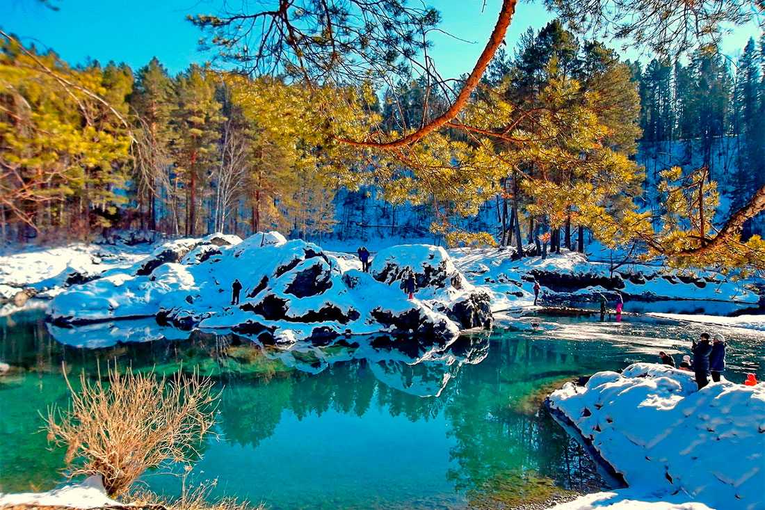 Голубые озера, которые некоторые романтики называют «глазами Катуни», – достопримечательность сезонная. Увидеть их смогут только те, кто приедет в село Аскат, что чуть севернее Чемала, в период с сентября по апрель. В конце весны же и летом, когда в горах Алтая начинается активное таяние снега, озера наполняются водой и становятся рукавом русла Катуни, огибающим небольшой остров.