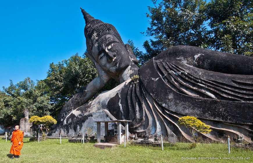 Парк 200 Будд был создан относительно недавно одним из религиозных лидеров Лаоса Бунлыа Сулитатом. Работа заняла много времени, и сам Сулитат её закончить так и не смог, поскольку сошёл с ума. Тем не менее, парк поражает воображение: на относительно небольшой территории собрано более 200 скульптур Будд, змей, богов и героев индуистской и буддийской мифологии. Благодаря тщательно продуманной планировке, посетитель может вплотную подойти к каждой каменной статуе, изучить все особенности резьбы, или же, если захочет, вглядеться в каменные лики издали. Удивительно то, что каждому высеченному в камне герою присуще своё собственное выражение лица. Абсолютно все статуи проработаны до мелочей: чешуйки на змеиных телах, складки на одеждах героев, атрибутика, лица… Высота некоторых статуй достигает 20 м, а некоторые в высоту не превышают рост пятилетнего ребёнка.