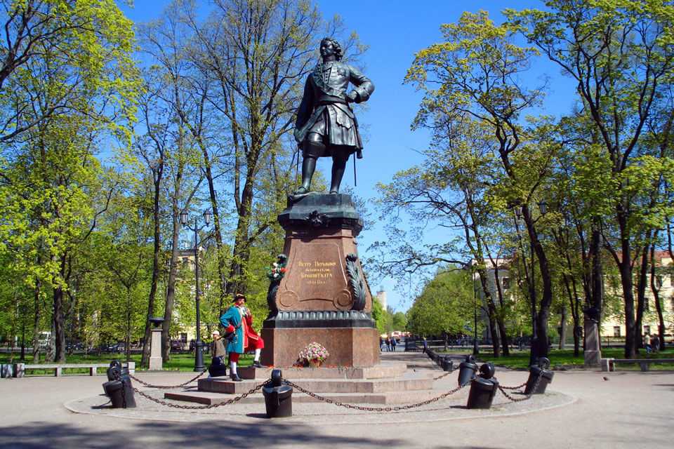 На центральной аллее в 1841 году установили памятник Петру I, окончательно планировать территорию закончили в 1846 году. Примечательно, что именно таким парк туристы видят и сегодня, производимые позднее изменения незначительны. Изначально любимое для отдыха и прогулок место было равно доступным для всех желающих.