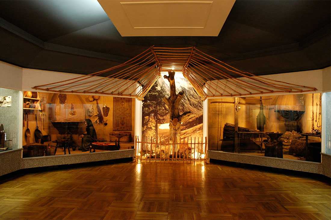 Посетители могут полюбоваться на произведения живописи, скульптуры, ювелирного искусства. Представлено вооружение, предметы быта и национальная одежда адыгов. Отдельная часть экспозиции посвящена многочисленным археологическим находкам. Возраст некоторых артефактов составляет около 5 тыс. лет. Представлены также изделия из бронзы, раскрыты особенности горного дела в регионе. А юным посетителям особенно по нраву реконструированные жилища горцев, зал динозавров и дольмены.