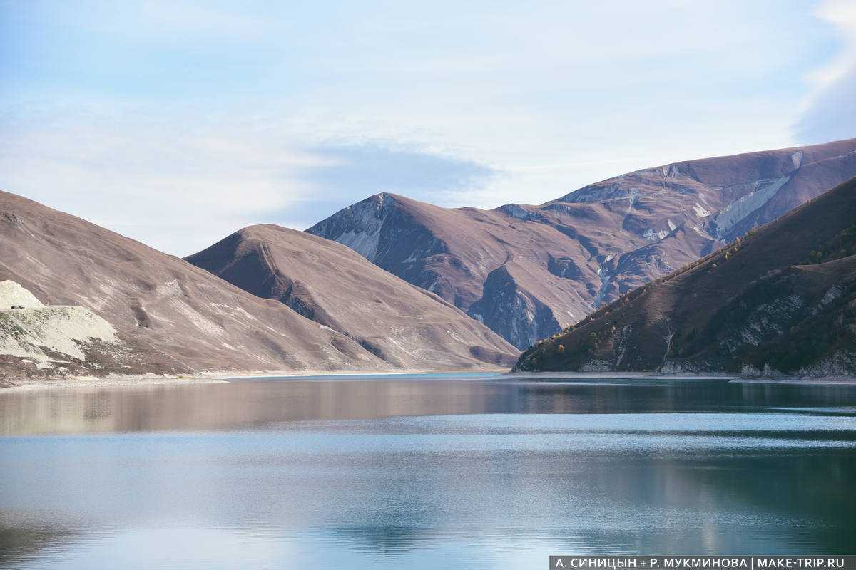 Озеро и пейзажи неземной красоты — здесь можно снимать фильмы о других планетах. Плюшевые холмы, лазурная вода, зеркальная гладь и полная тишина навевают безмятежность. Озеро поделено между Дагестаном и Чечней. Купаться запрещено. Дорога, ведущая к нему и дальше, в Дагестан — необычайно живописная. Каждый поворот требует: «Остановись, любуйся, фотографируй!».
