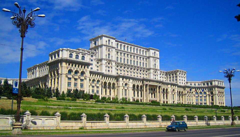 Идея возведения здания необычно больших размеров принадлежит Чаушеску и появилась у него после посещения Китая и Северной Кореи. Монументальные строения Азии покорили правителя Румынии. Землетрясение 1977 помогло осуществить его мечты. Многие постройки центральной части были разрушены. Их снесли, и в самом сейсмически безопасном районе города возвели комплекс, названный Дом народа (жители определили его, как Дом фараона, Дом Чаушеску). Объём постройки больше на 2 %, чем пирамида Гизы.