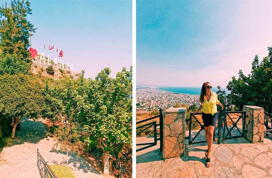 На горе Бекташ в Аланье красуется огромная надпись «I love Alanya». Рядом с ней находится смотровая площадка, зоны отдыха, видовые рестораны и парк, который был открыт в 2018 году. Есть даже фонтан с питьевой водой. Людей не много. Это отличное место для прогулки и фотографий с видами на Аланью.