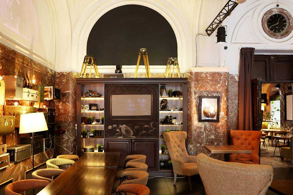 На первом этаже находится «Лендок-ресторан». Там приятно сидеть у окна и смотреть на прохожих. Салат с лососем, авокадо и хурмой стоит 420 Р, куриные котлеты с картофельным пюре — 370 Р, медовик или чизкейк — 270 Р, капучино — 190 Р.