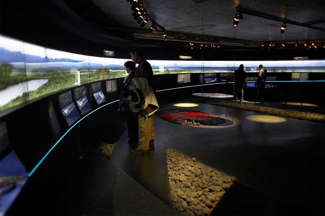 Центральное место на выставке занимает так называемый “чертог”, который был обнаружен в 2001 году. Ученые считают, что люди жили в этом месте в период с 910 по 1000 гг. Чертог является одним из самых древних сооружений в Исландии, созданных руками человека. Также в экспозиции представлены реликвии и предметы культуры викингов.