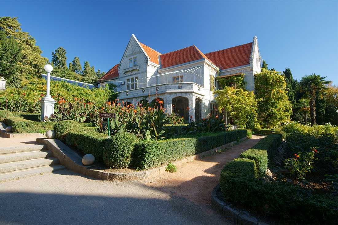 Дворец Харакс возведен по проекту знаменитого крымского архитектора Краснова для сына Николая I в начале прошлого века. Стильный модерновый особняк основательностью и некоторой приземистостью, светлым фасадом под красной черепицей, большими окнами и минимальным декором напоминает шотландское шале.