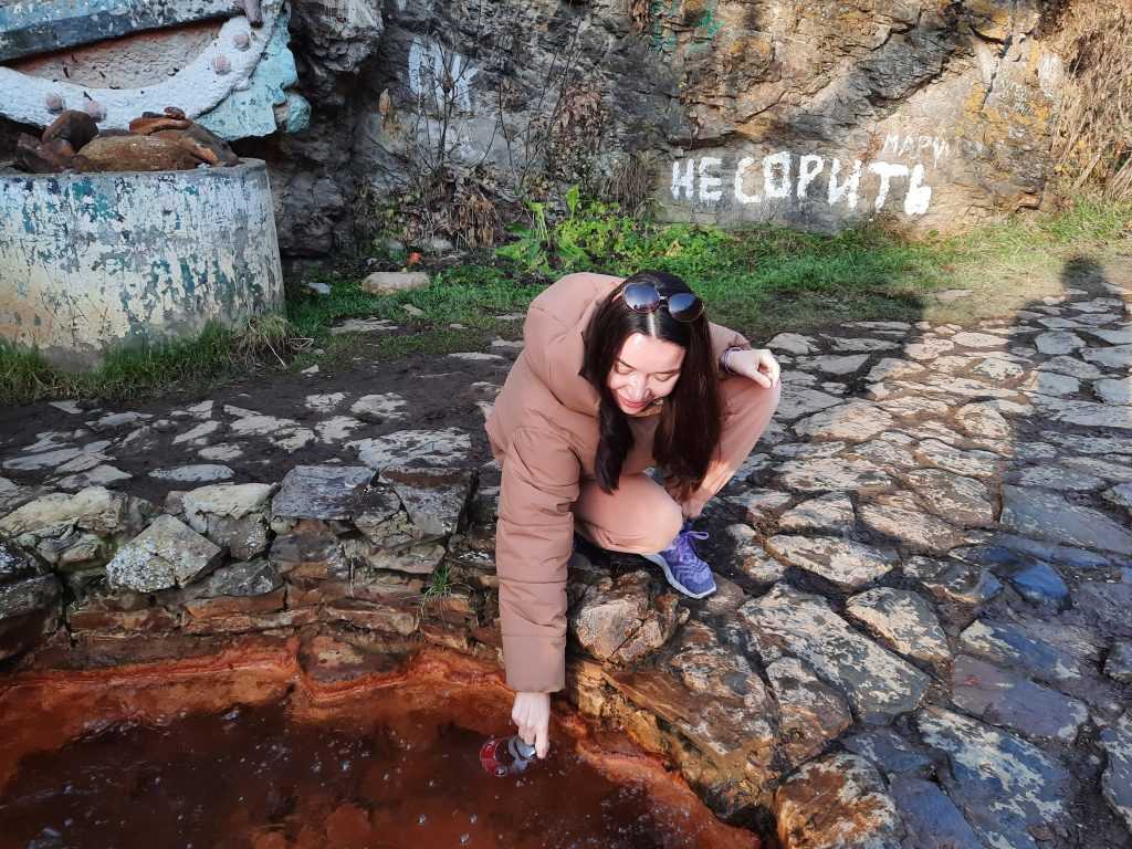 Однако если пить такой нарзан постоянно — эмаль зубов потемнеет из — за содержащегося в нарзане железа. На вкус вода как холодная газировка, не вкусная и отдает ржавчиной, но разительно отличается от магазинной. Берите тару с собой, в идеале тёмного цвета, чтобы от солнечных лучей не разрушался целебный состав.