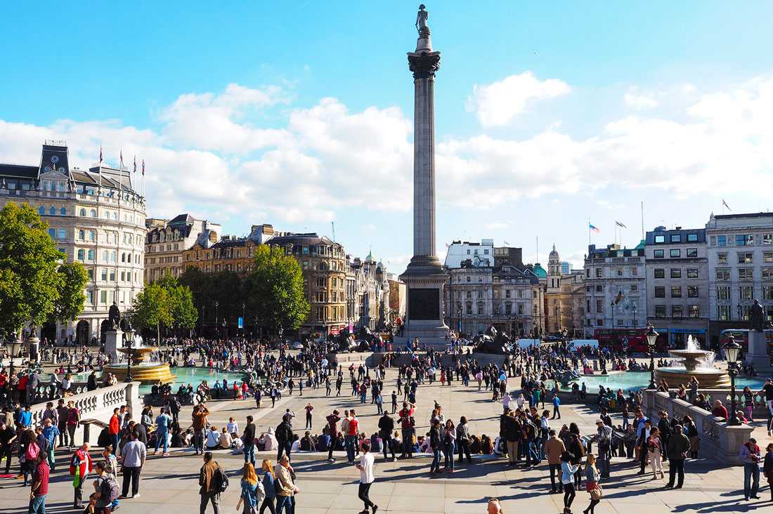 Недалеко от тусовочного и театрального района Сохо располагается Трафальгарская площадь. Построена она была в честь победы вице-адмирала Нельсона над французами и испанцами в Трафальгарском сражении в 1805 году. Колонна Нельсона, 183-футовый гранитный памятник, возвышается над фонтанами и бронзовыми скульптурами площади, которые были отлиты из французских пушек.
